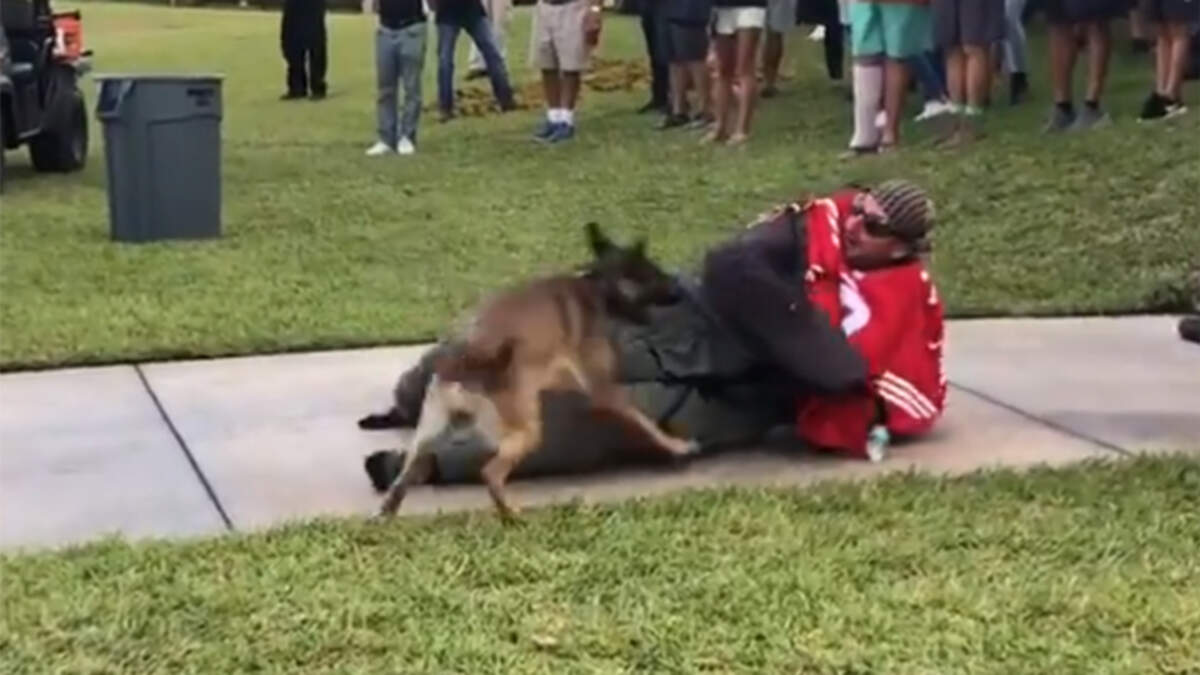 The videos were uploaded to Instagram, but have since been removed. They were re-uploaded to Twitter by documentary film director Billy Corben. The first video shows up to four dogs attacking the handler, identified as Josh. The original post on Instagram said the dogs were attacking him because he refused to stand for the national anthem.