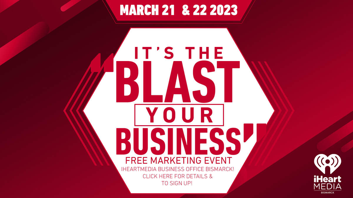Join iHeartMedia for a "Blast Your Business" FREE Marketing event on March 21st and 22nd at the Bismarck iHeartMedia Business Office! Let us help you make some noise to consumers!
