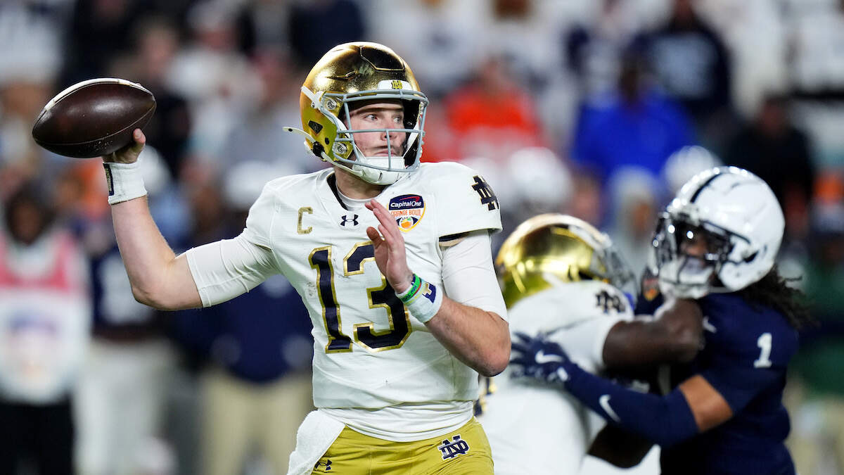 Notre Dame rallied back from a 10-3 deficit at halftime with quarterback Riley Leonard returning from injury to lead a drive on the first possession of the third quarter, which was capped off by his own 3-yard touchdown run. Leonard, who was taken out of the game late in the second quarter and evaluated with a concussion, also connected with wide receiver wide receiver Jaden Greathouse on a 54-yard touchdown to tie the game at 24 with 4:38 remaining.