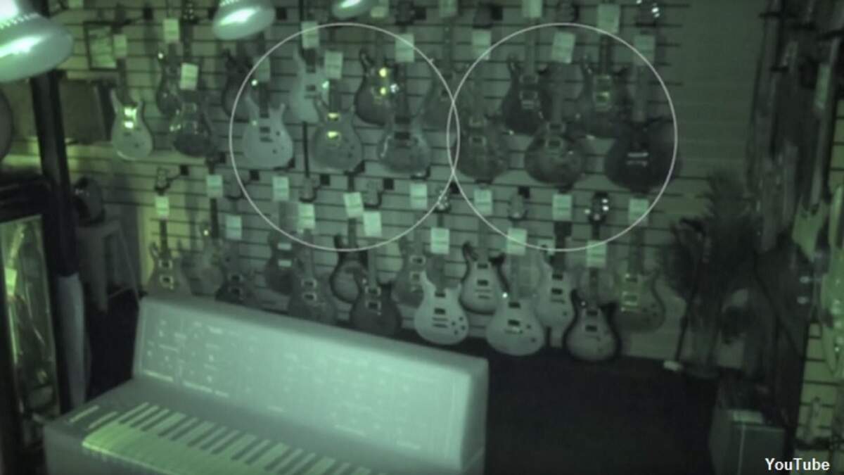 Their already-piqued curiosity went to 11, so to speak, when cameras at the store captured some odd activity that occurred when the shop was closed. In the video, which can be seen above, a pair of guitars hung along a wall inexplicably begin moving as if someone or something is touching them. Later in the footage, a price tag can be seen falling from another guitar in a fashion which suggests that it was yanked off the instrument.